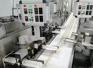 制作麻花的原始材料從進入生產現(xiàn)場開始,經過和面機-四頭液壓麻花機-油炸生產線-包裝機-系列的連續(xù)流水化生產線。生產線由工件傳送系統(tǒng)和控制系統(tǒng)組成,組成連續(xù)、高效...